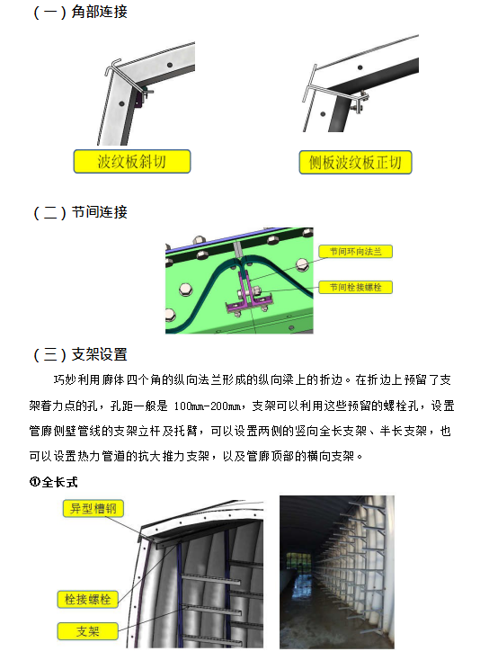 三、以上的國內(nèi)外的鋼管廊,其橫截面基本上都是圓形、半圓形、馬蹄拱形等,都直接采用了公路涵洞鋼波紋管的技術(shù),故以下將上述鋼管廊暫稱為“涵洞型”波紋鋼管廊。