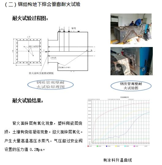④更為重要的是,耐火涂料只能阻止火災(zāi)時鋼結(jié)構(gòu)的溫度不高于 550℃,但對于鋼結(jié)構(gòu)地下管廊來說情況特殊,在火災(zāi)發(fā)生半小時左右,耐火涂料覆蓋的鋼結(jié)構(gòu)體溫度就超過 150℃,廊體外部土壤中的水份形成高溫高壓蒸汽,其產(chǎn)生的次生災(zāi)害有可能嚴重于火災(zāi)本身。